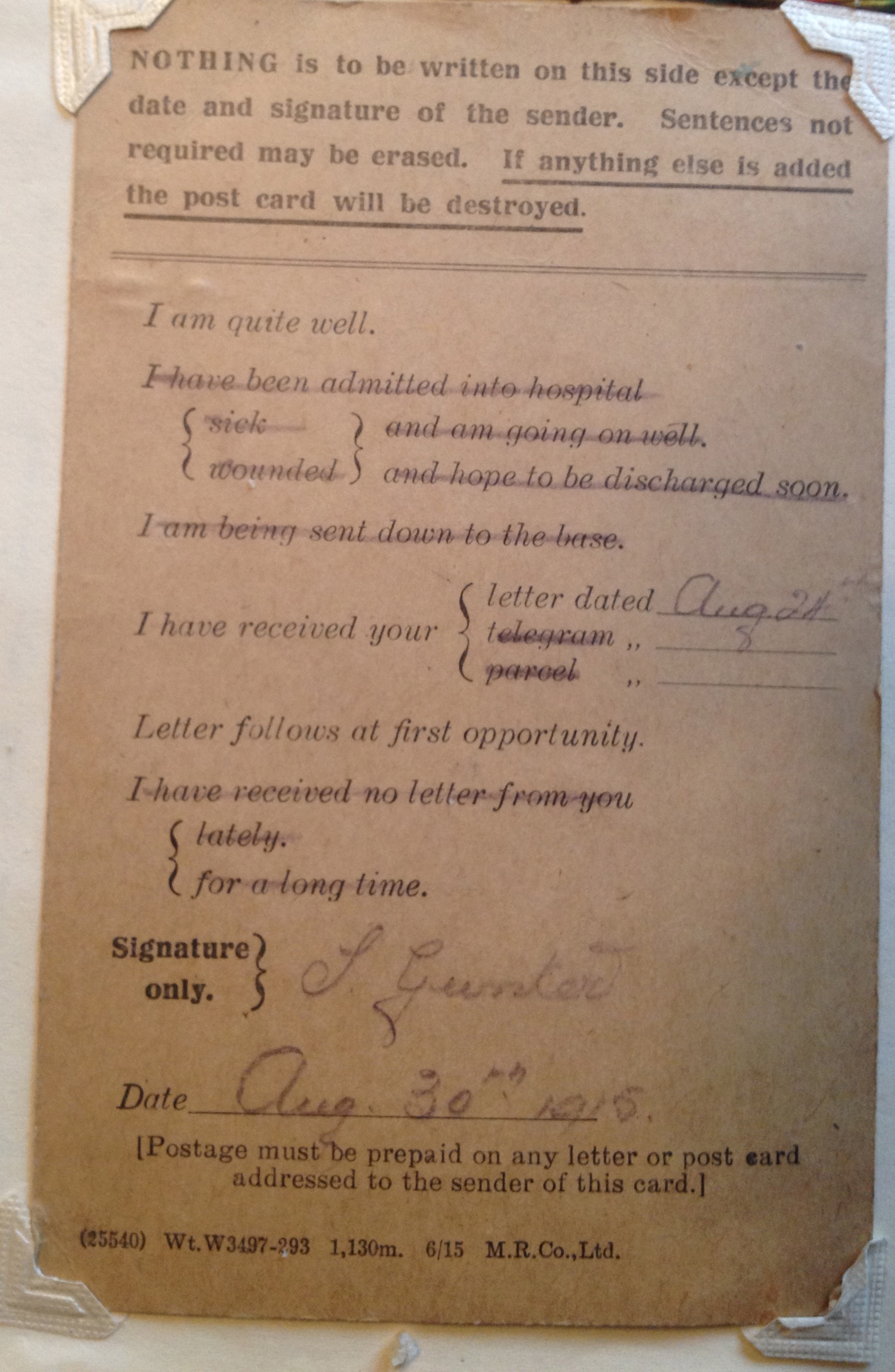 sure if he had been around guns as a child. The Gunters were quite well to do in those days so he may have hunted, however, by the time he enlisted most of the money was well on its way to being spent by my great grandfather on women, gambling, and football (he was the first manager to pay £1,000 for a player).