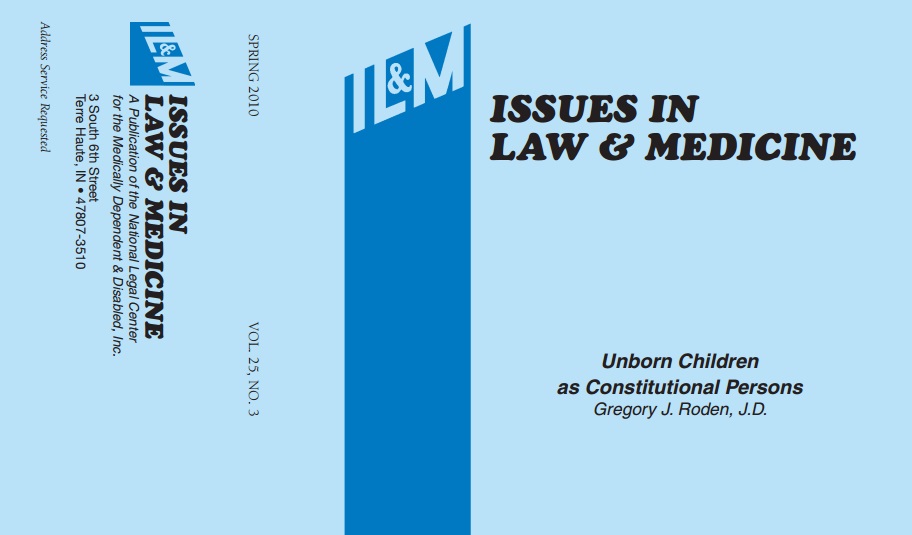 In Spring 2010 the subject matter was personhood. Yes, an entire issue of a journal dedicated to the idea that unborn children are constitutional persons.