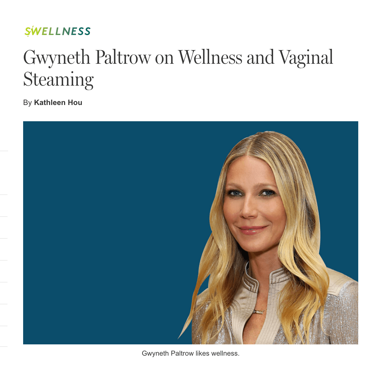 In an interview with The Cut non gynecologist, Gwyneth Paltrow extolled the virtues of “vagina” steaming for wellness or something called “swellness.”
