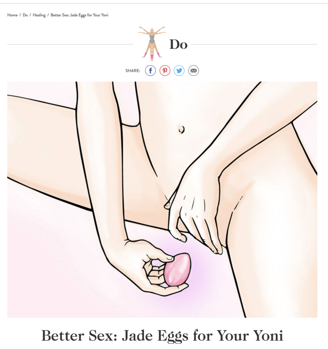 Letting Paltrow and her PR team brand jade eggs as a wellness trend instead of snake oil is wrong. Medical care isn’t supposed to be trendy, it should be safe and effective. For example, a woman could injure her pelvic floor using a jade egg the way GOOP recommended. Hope Paltrow’s sex life and her lactobacilli are okay because Paltrow “insisted on trying one.”