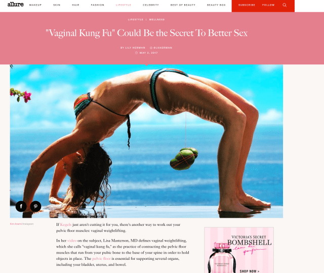 I get that vaginas are cool, I really do. I also get that they sell copy but Allure is venturing into GOOP territory when they promote an unstudied and potentially harmful technique. An Instagrammer isn’t a medical expert and as for Dr. Masterson recommending the technique? I look forward to her publishing her ultrasound study on how the pelvic floor contracts with heavy weights and her prospective study comparing this with traditional Kegel exercises.