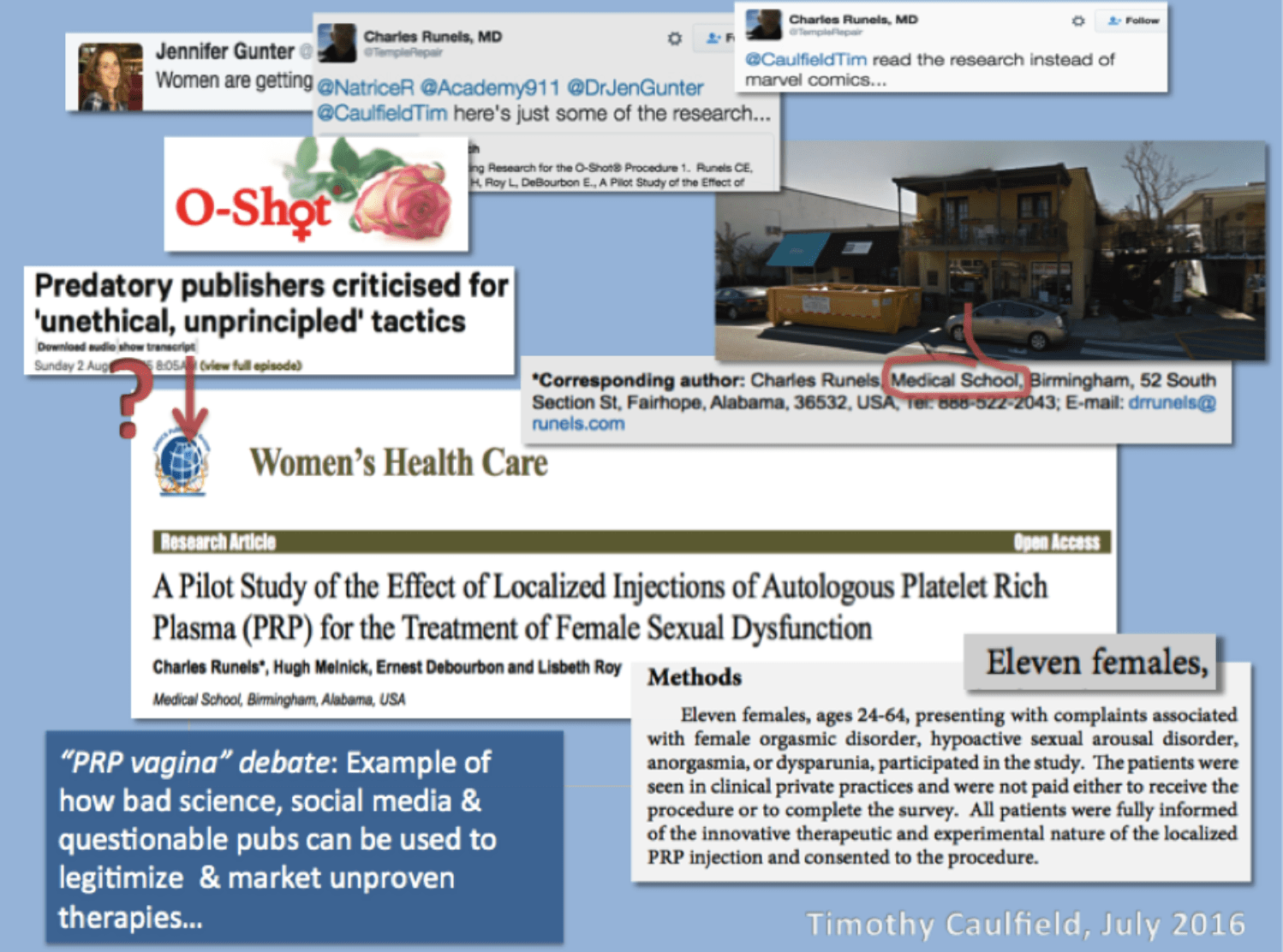 My career has been dedicated to helping women make evidence based choices. As a gynecologist who specializes in the lower reproductive tract it is well within my scope to comment on an internist’s claims about vaginal PRP.
