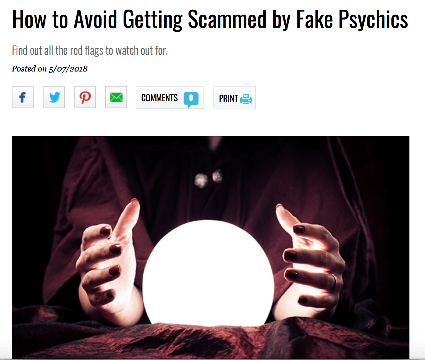 Yesterday I posted about Dr. Oz devoting time to distinguishing between “real” and “fake” psychics. I know. I’m running out of air quotes.
